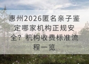 • 惠州2026匿名亲子鉴定哪家机构正规安全?机构收费标准流程一览