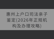 • 惠州上户口司法亲子鉴定(2026年正规机构及办理攻略)